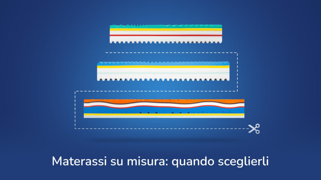 Un prodotto su misura è realizzato appositamente per le esigenze e richieste del cliente che vuole ottenere la miglior soluzione di riposo possibile dal suo sistema letto. Il prodotto ideale deve accogliere e sostenere il corpo, facendoti sentire al risveglio riposato e rigenerato. Inoltre, ci sono diverse situazioni nelle quali richiedere un prodotto su misura come la necessità di adattarlo ad uno spazio ristretto o ad una struttura letto particolare.