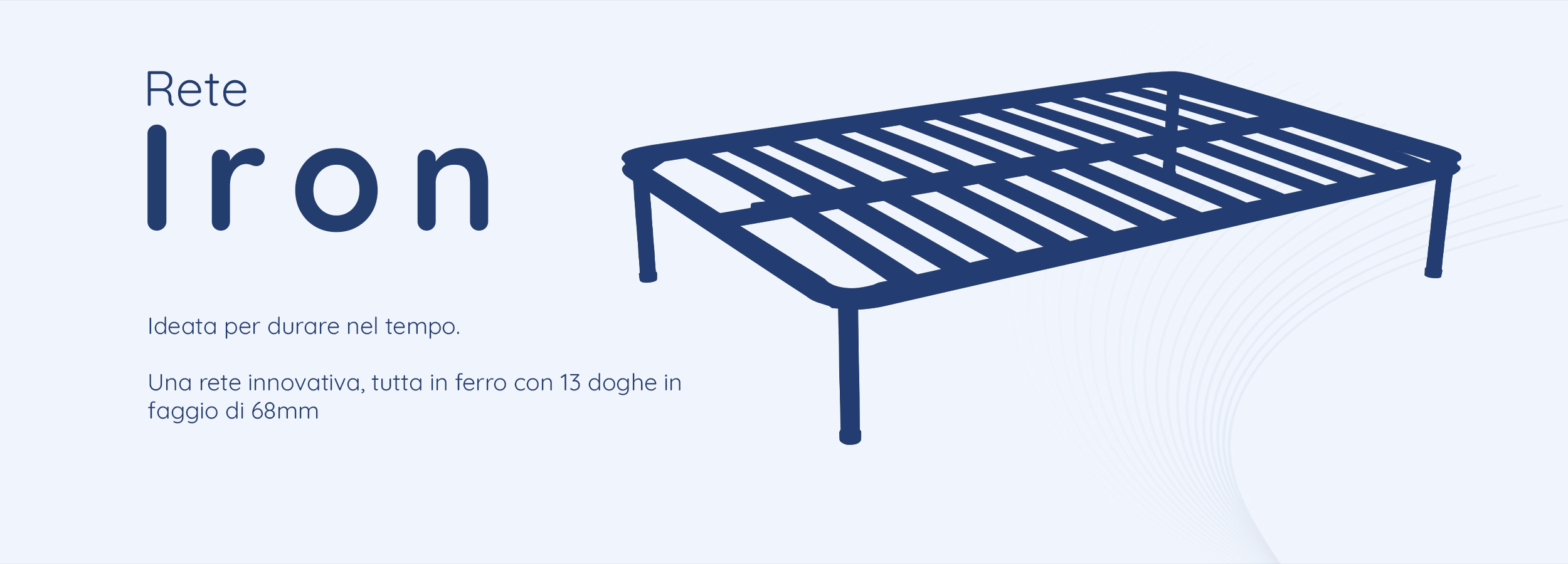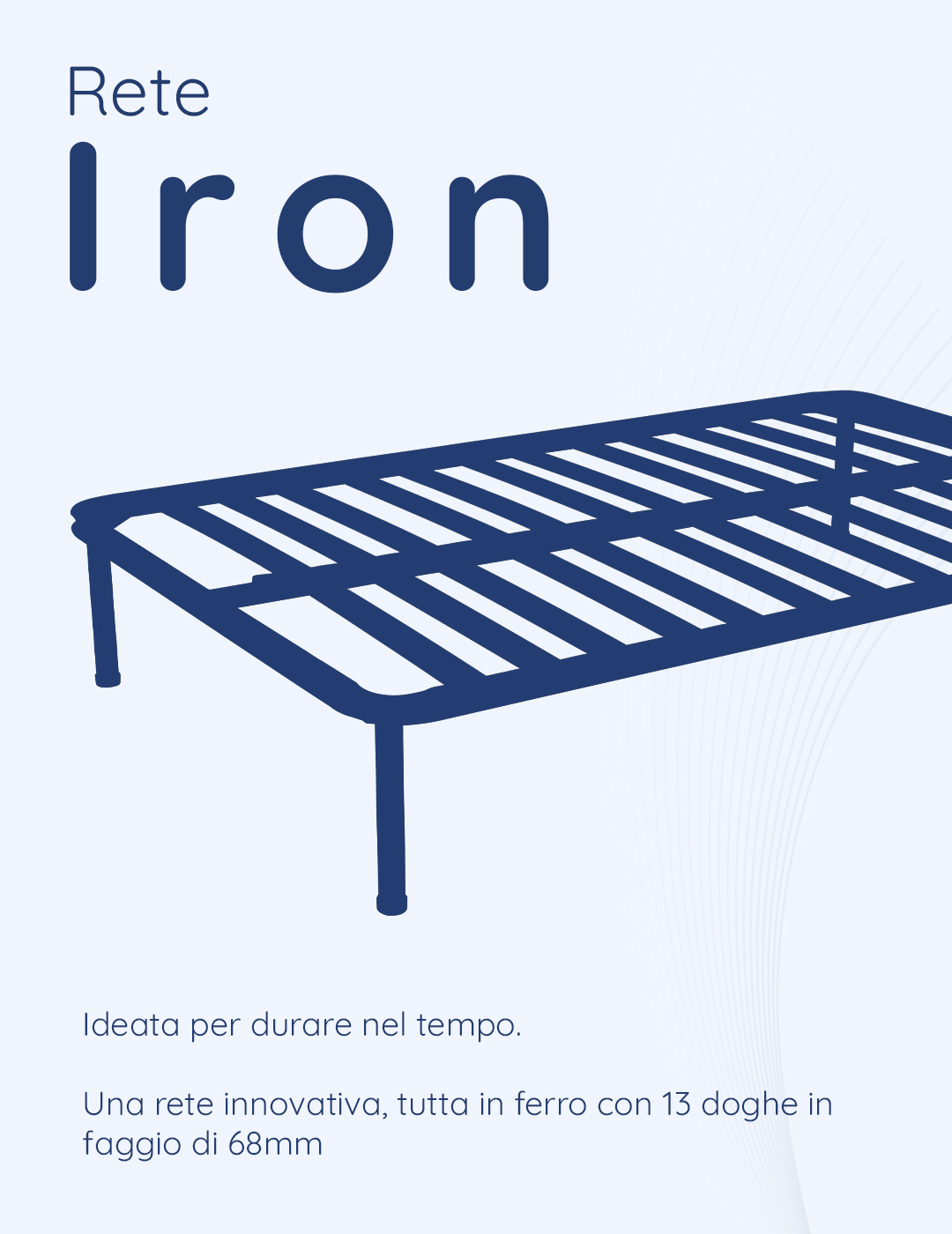 La Iron è una rete innovativa, completamente realizzata in ferro, con 13 doghe in faggio di 68mm.